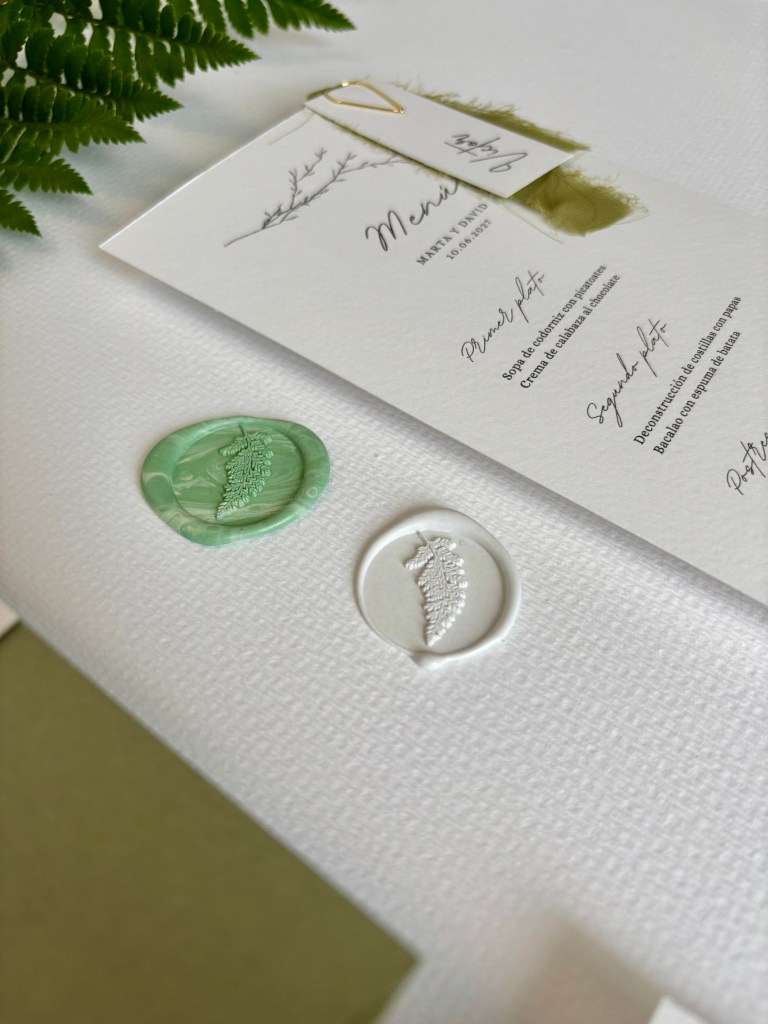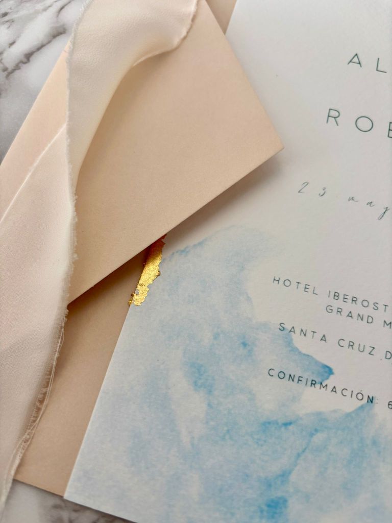 Sobres artesanales y premium, pan de oro, cintas, lacres.