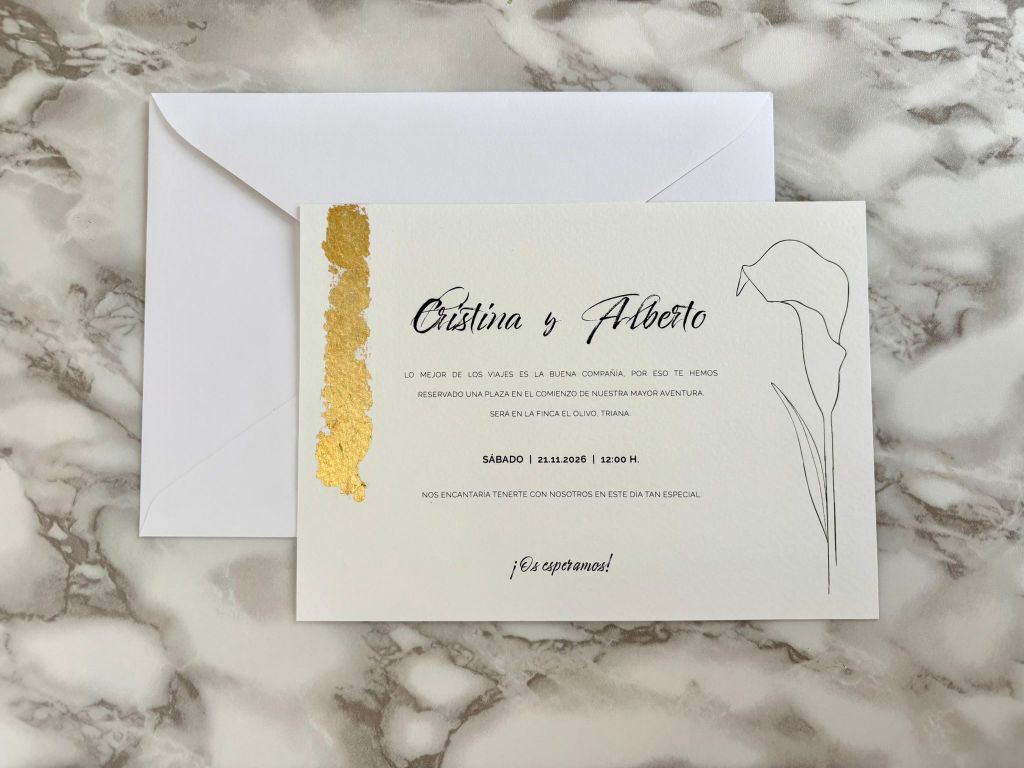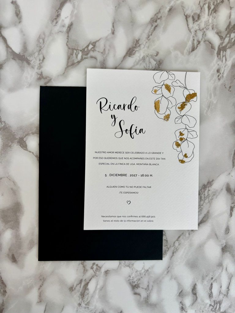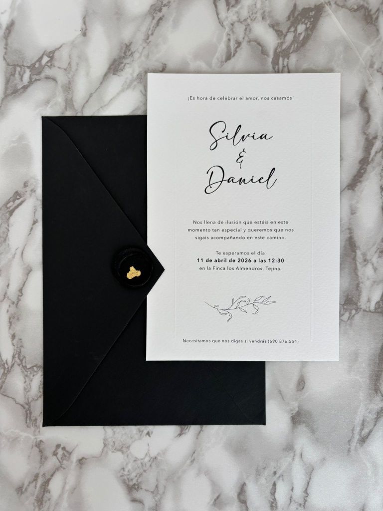Elige un modelo y añade los acabados que quieras. Todas las invitaciones incluyen sobre premium en diferentes colores, también existe la posibilidad de cambiarlo por un sobre artesanal.