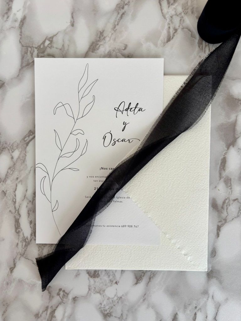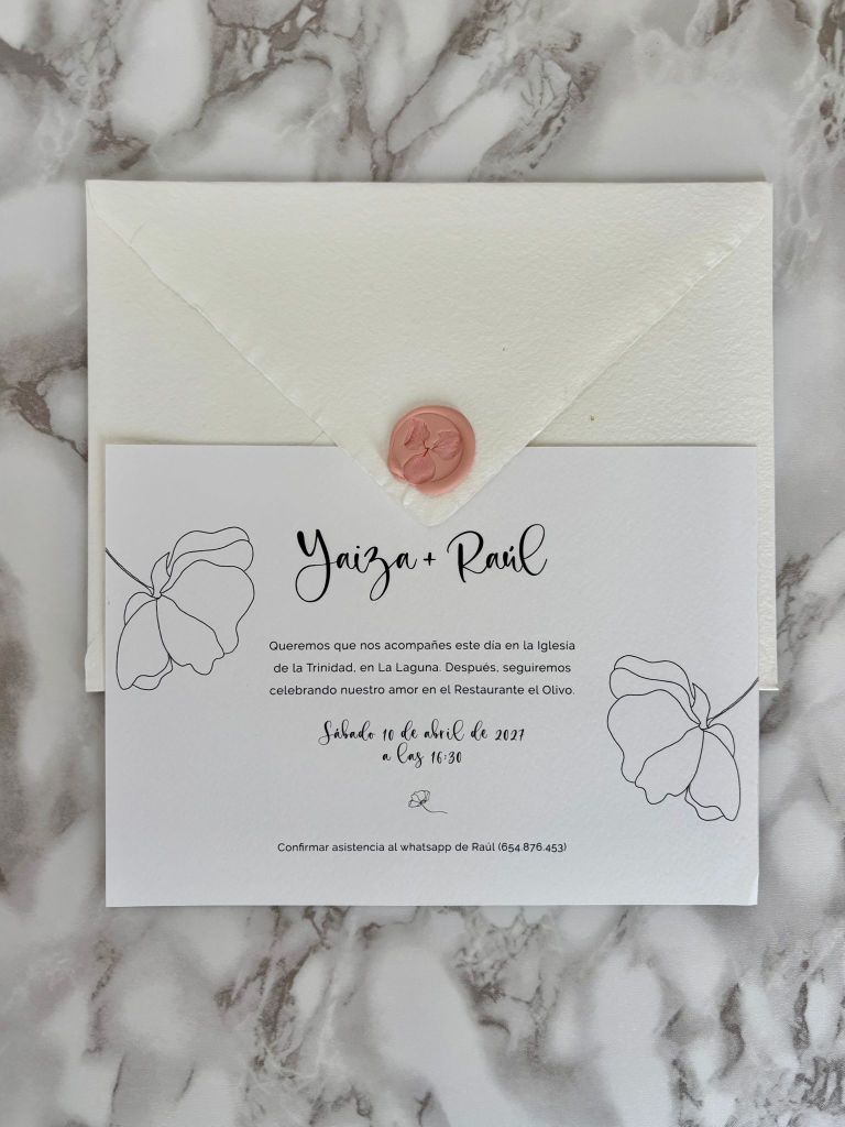 Invitación Gardenia con sobre premium, con detalles florales y un toque artesanal.